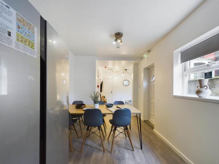 This property will features six rooms, a well-equipped kitchen, and carefully curated interior design. With amenities like high-speed broadband and a flatscreen TV, residents can expect a comfortable living experience. Commute times to Manchester Uni are under 15 minutes on foot, while Manchester Met is just over 20 minutes away. Alternatively, cycling takes about 4 minutes to Manchester Uni and 9 minutes to Manchester Met. Numerous buses along Wilmslow Road offer further transport options.