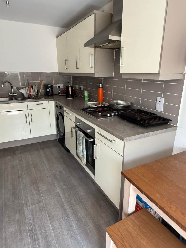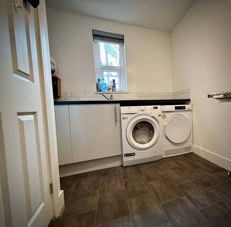 ✅ Modern, fully equipped shared house with a large kitchen (lots of storage, ovens, hobs and fridge freezers), separate laundry room with washer & dryer, plus an enclosed rear garden — ideal for summer evenings.