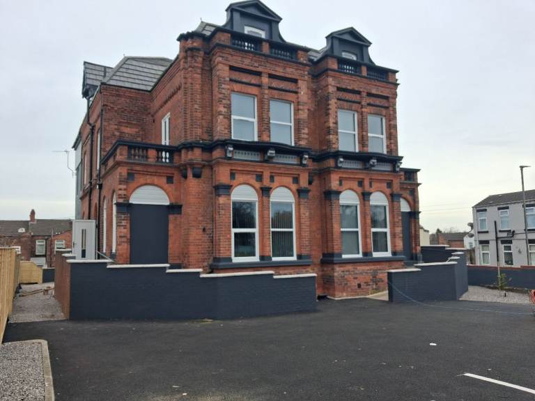 High spec professional house share (hmo) new to the market. Fully fitted and furnished large ensuited double rooms available now . Beautiful high end finishes and large new kitchens , private parking with outdoor space opposite taylor park with excellent travel links for all major routes in to and out of St helens. All bills included high speed Internet