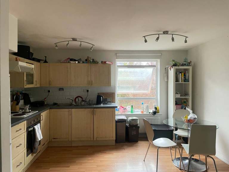 You will share the ground-floor bathroom with only one other flatmate. There is a comfortable and spacious kitchen and living room area that we all share.