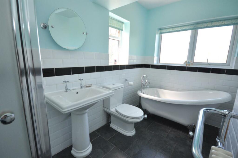 🔹 Modern bathroom with full bath and shower