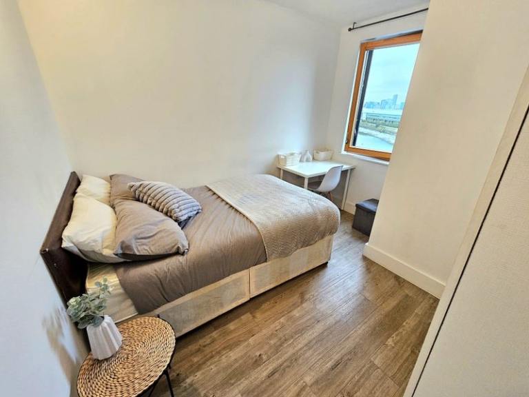 Room available in a professionally managed shared flat in Poplar. This single room comes furnished with a quality single bed, wardrobe, and chest of drawers.