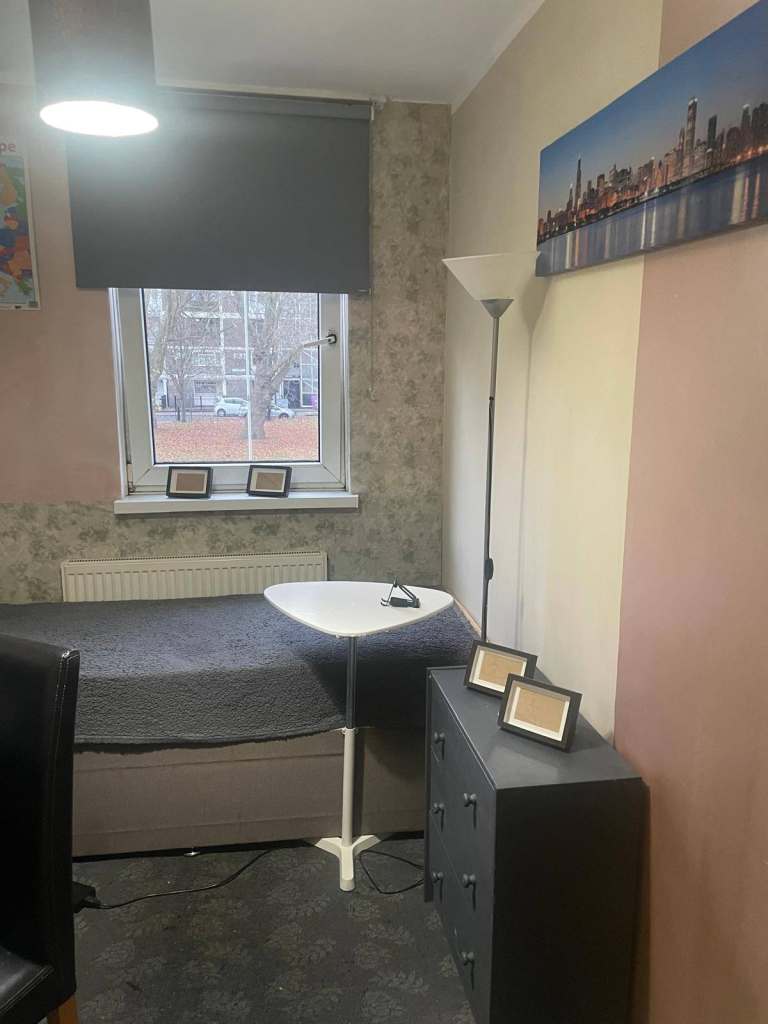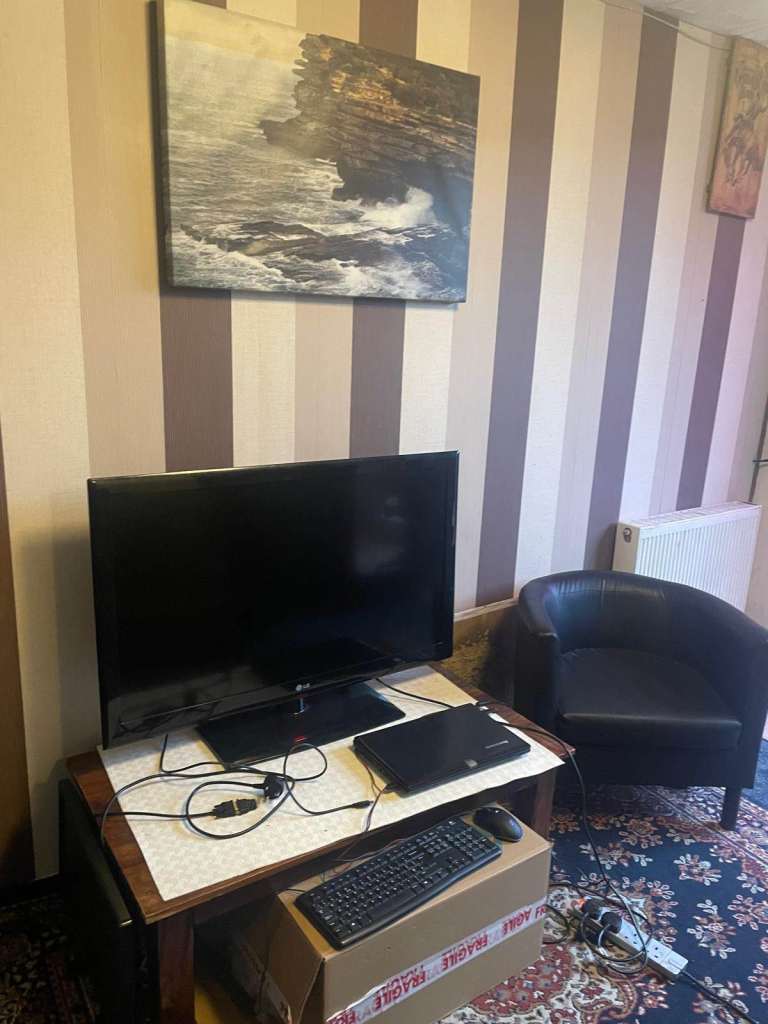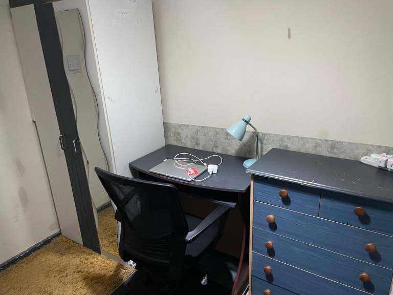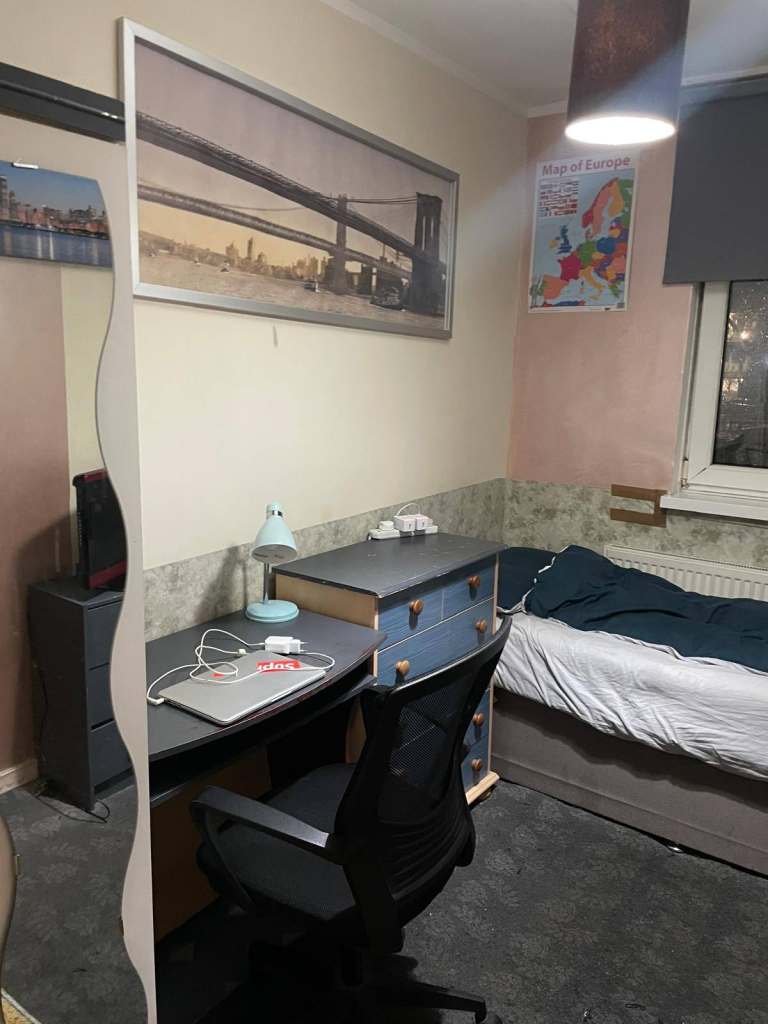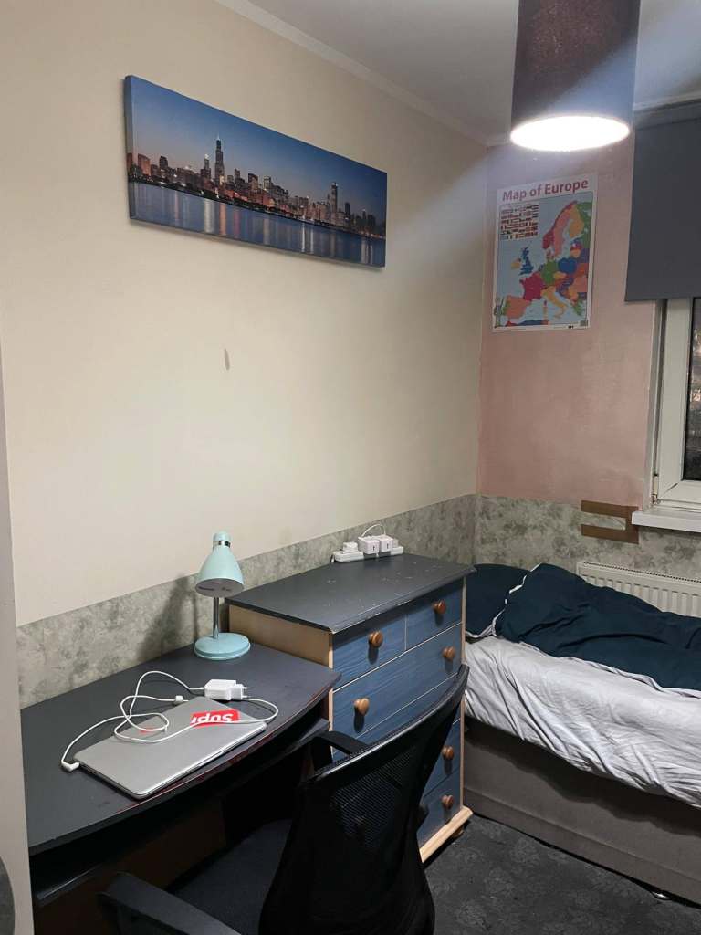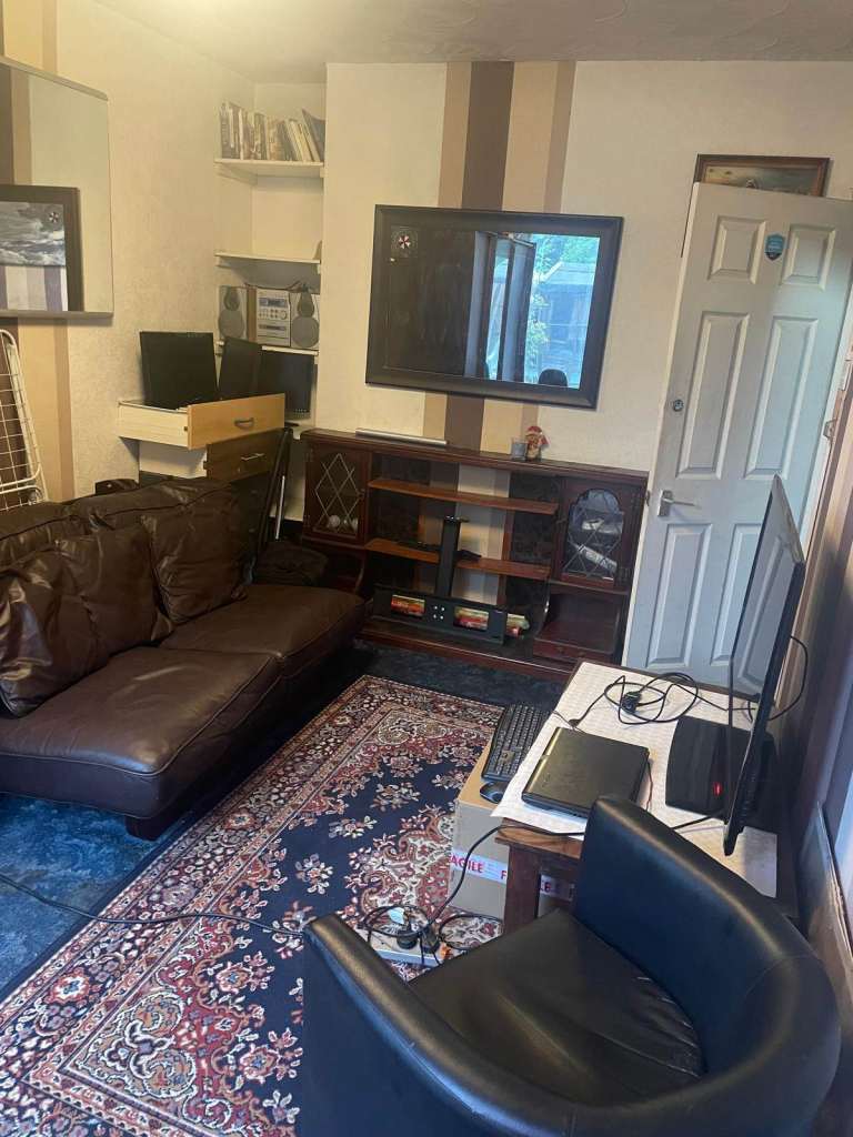 Room is fully furnished. wardrobe, good size desk to work on. confy chair, drawer, TV etc screen.