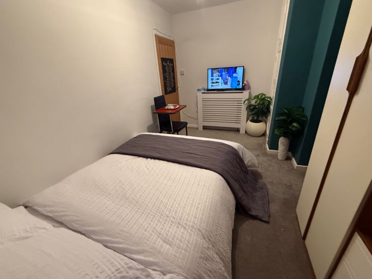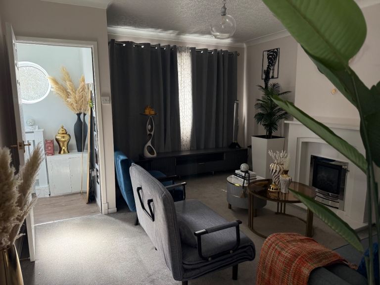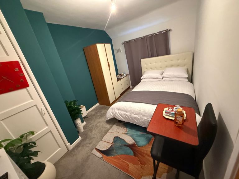 A furnished double bedroom in a newly fitted 2-bedroom house with beautifully maintained front and rear gardens at Rushall, Walsall WS4.