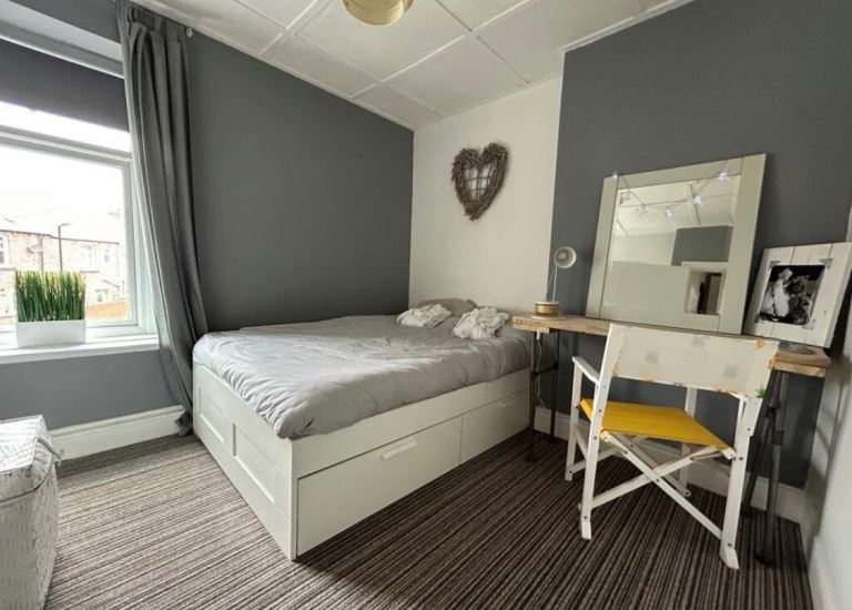 Room to rent has new double bed which has full 4 drawer storage beneath