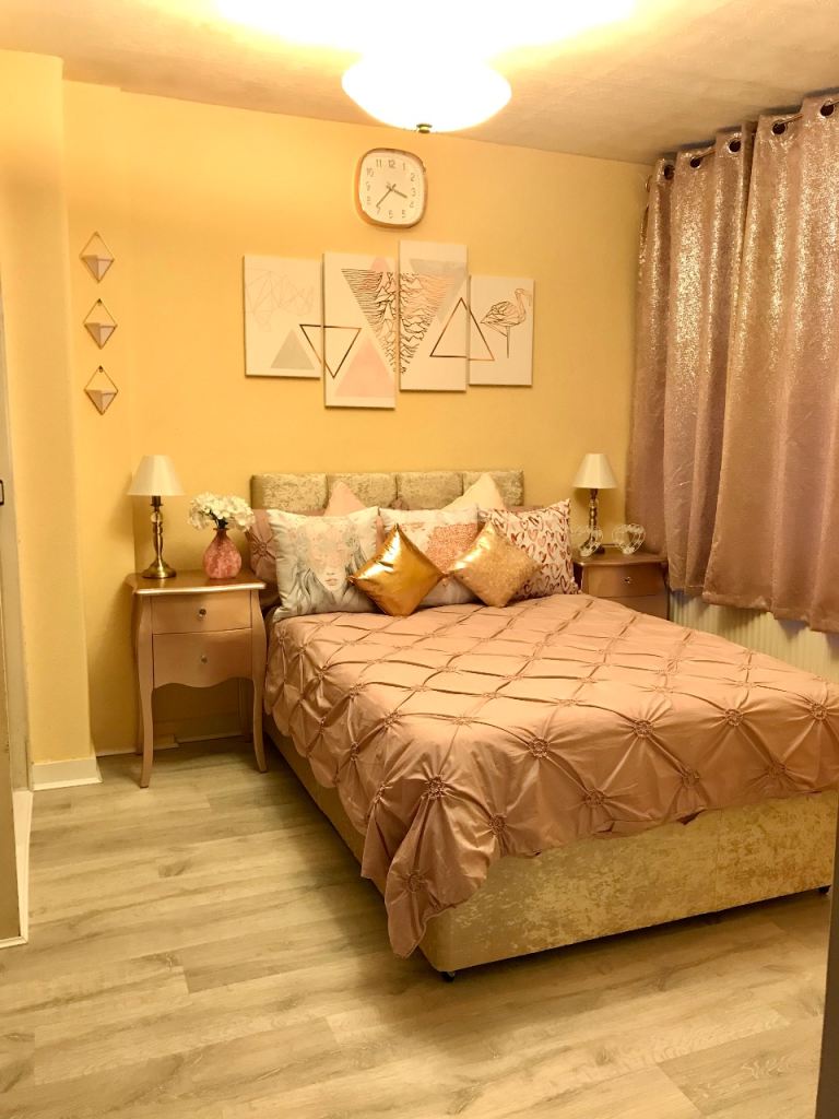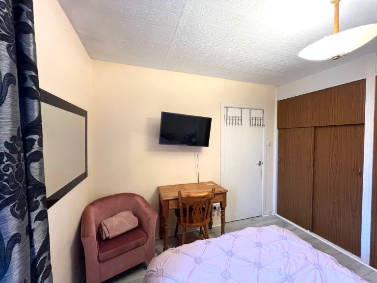 It’s a two bedroom house that I own and is spotless clean. All double glazing. Spacious Kitchen & Dining are downstairs. Shower over bath is beside your room. The bedroom is a big spacious bright room with TV, study table & chairs for study or dining, book cabinet, mirror, newly bought bed, and very large built-in wardrobes and storage all throughout. Kettle and microwave in the room provided for your own convenience too.