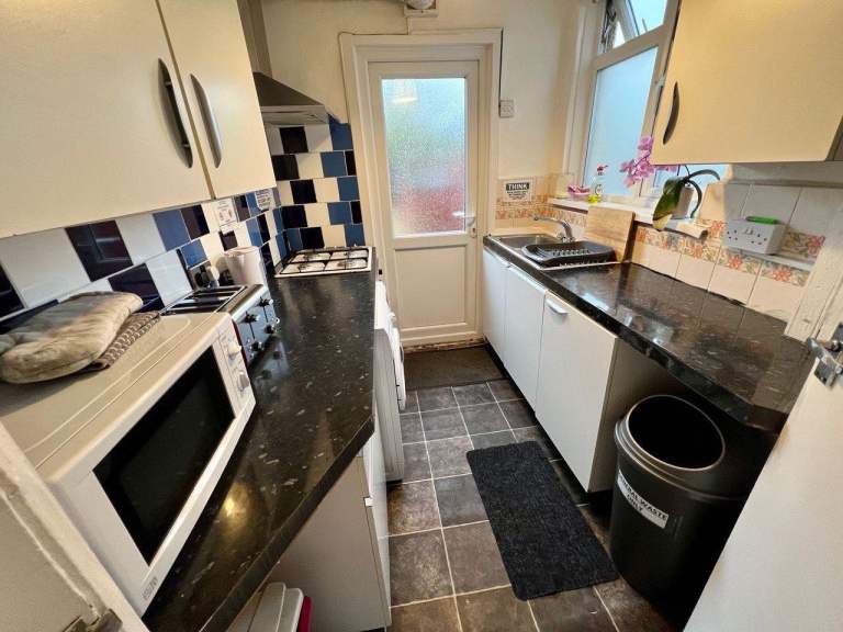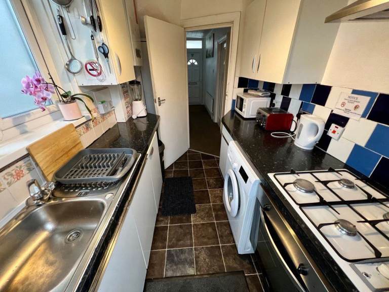 Fully fitted house with microwave, glasses, plates, toaster, washing machine etc.
