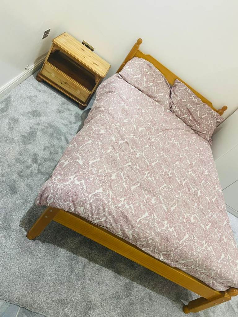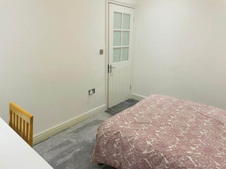 - Furniture provided (oak double bed, complete bedding set including all covers, triple wardrobe, desk, desk chair, bedside table)