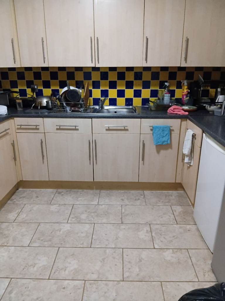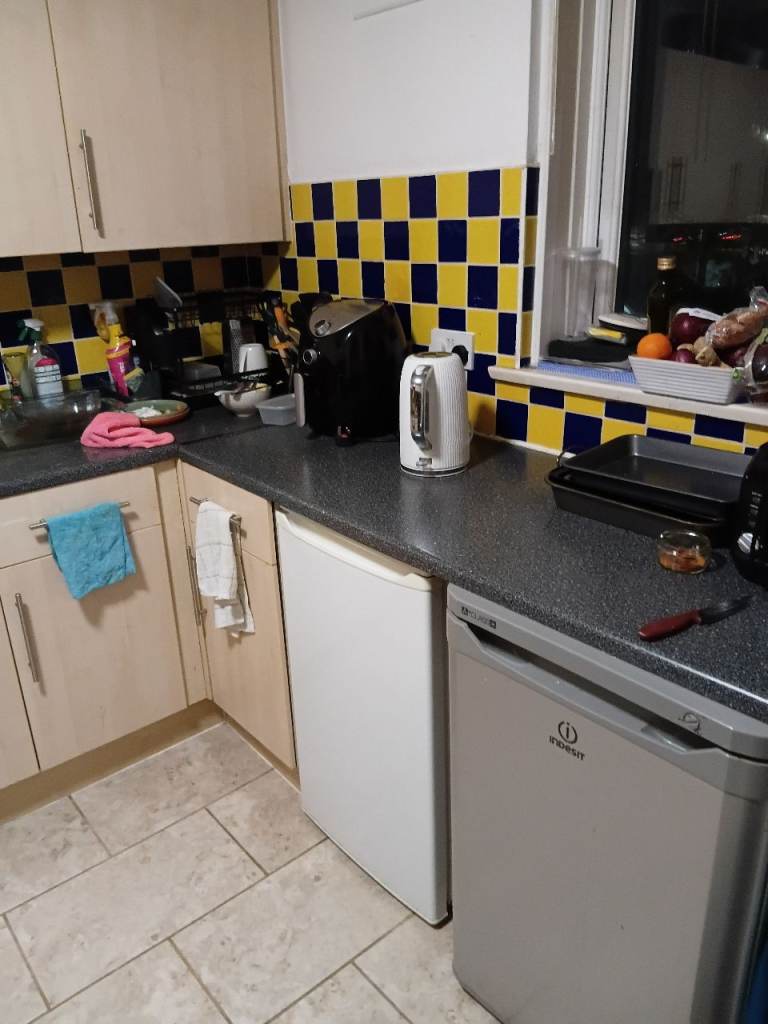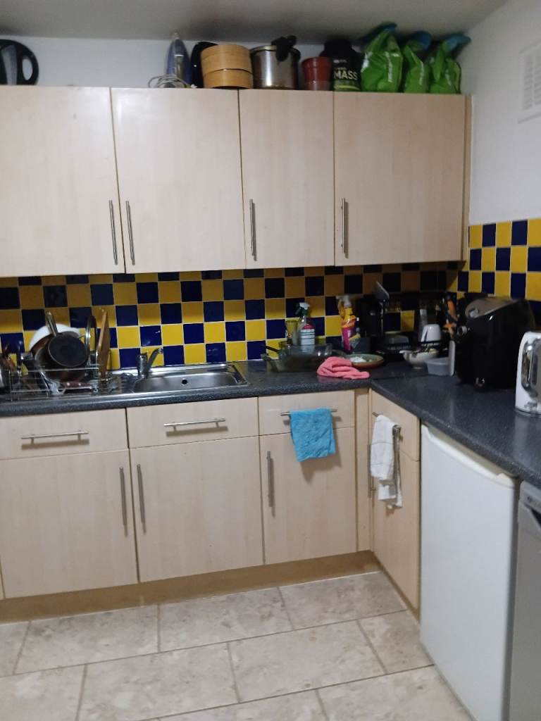 Furnished. Fully fitted modern kitchen with own cupboard space, fridges and freezer, washing machine, internet. Free Parking.