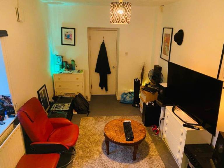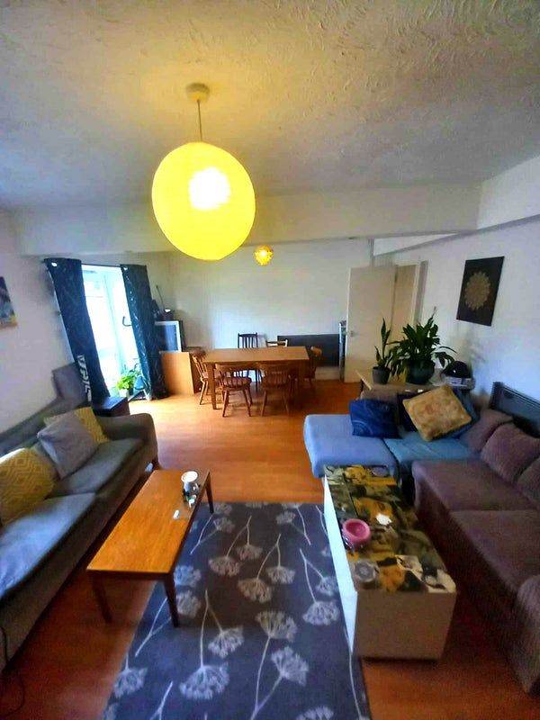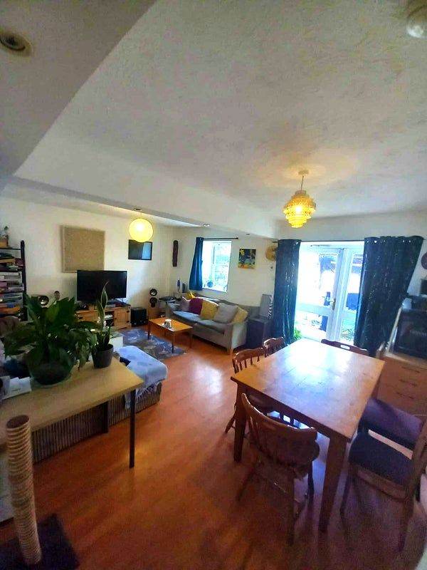We can't have another pet in here, sorry. But animal lovers are welcome. There is a small courtyard at the back of the house that does get some afternoon sun, so there is potential to grow things. I've built a bike shelter now, which isn't in the pictures. The lounge/dining room is massive, so the flat is really big for the price in central Bristol. It would be nice to cook meals together and in the evenings play games or watch something.