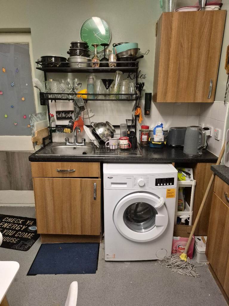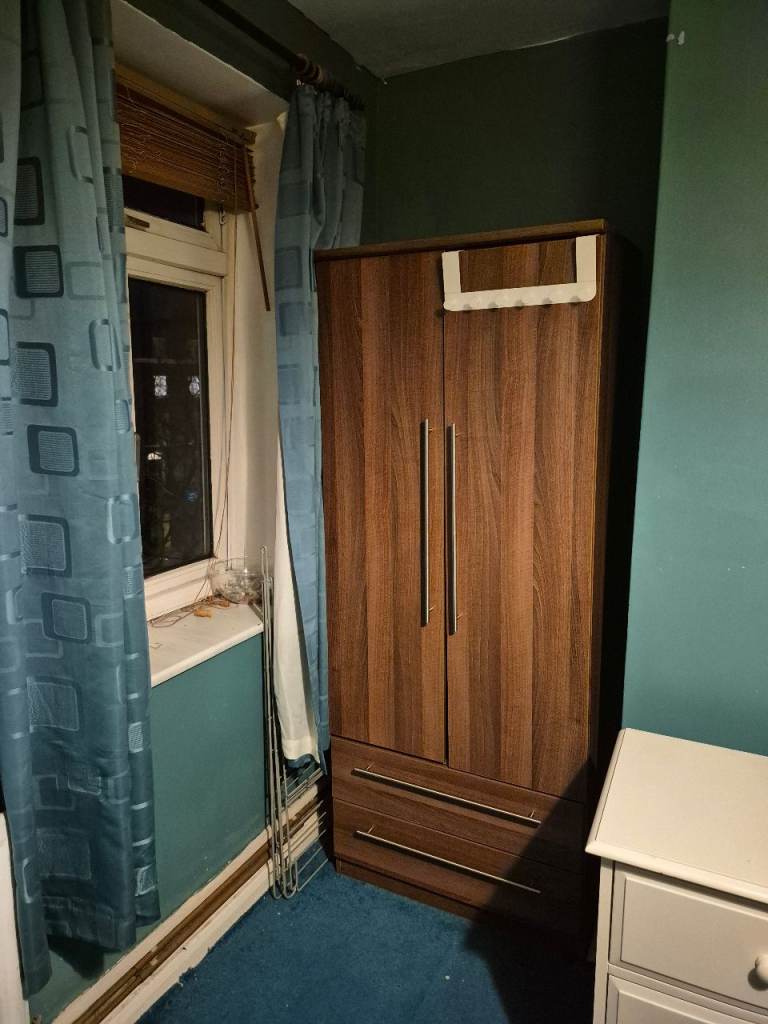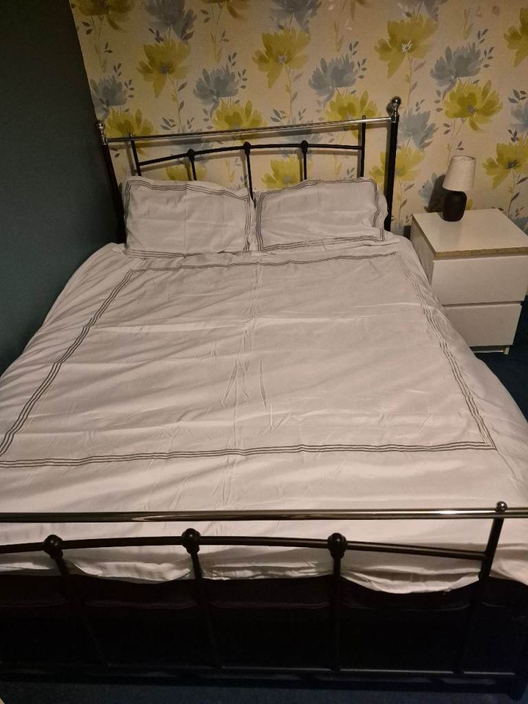 Double room , double bed, set of drawers, 2 bedside tables, wardrobe, shelf unit , blinds, central heating, use of kitchen all appliances, electric and gas and internet including in price no other bills and tv in room and cable , toilet and bathroom are separate the room is big 13 ft by 11ft,