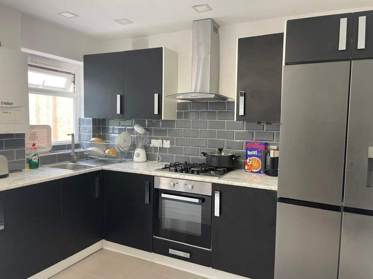There is a fully-furnished, large, double room with a private en suite bathroom in a house, in Feltham and it is available for immediate viewing. It is near the High St, the bus stop to Heathrow Airport, the bus stops to Richmond, Hounslow and Hatton Cross, and Feltham Shopping Centre.
