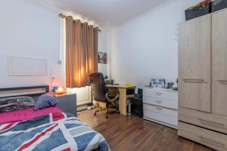 It has a central heating system, washing machine and WiFi as well as a shared living room and dining room. It also has a spacious backyard decking space. It’s a four-bedroom house with four bathrooms. Two rooms are occupied by a single person and the third by a couple. Two weeks’ deposit required.