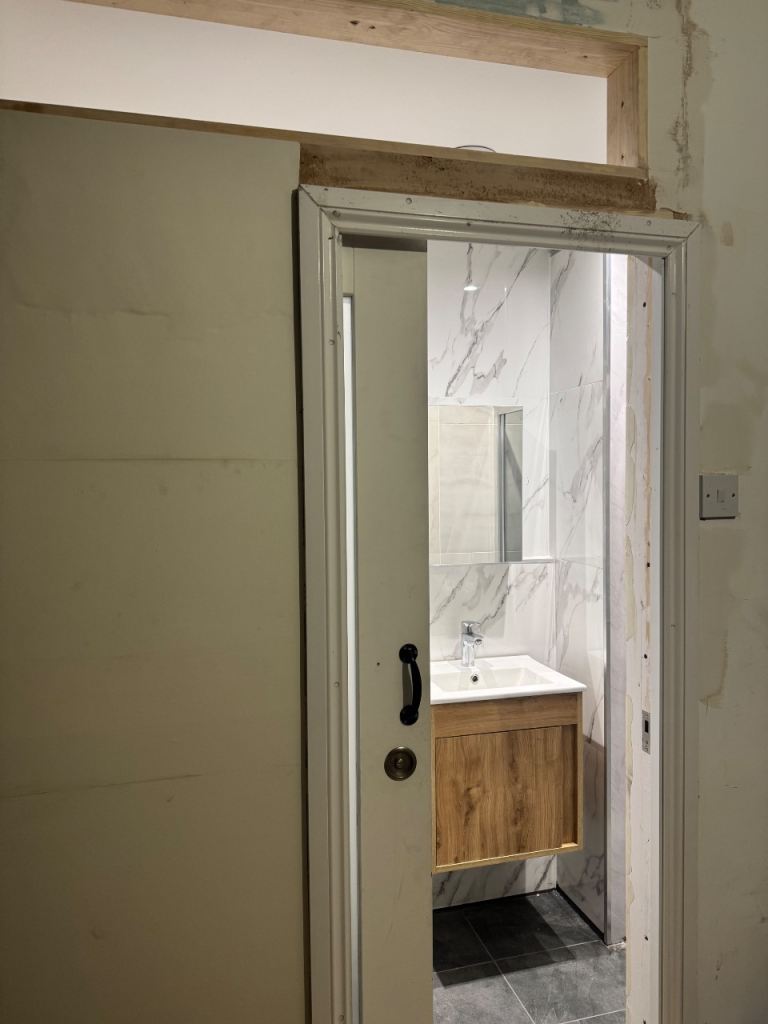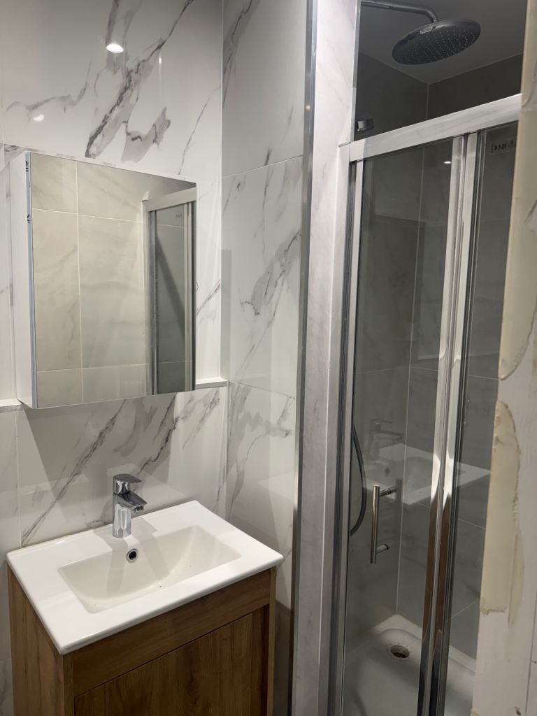 Newly built room with attached bathroom. Small pantry and washing machine in private common area (not with landlords). 2 mins from tube station , high street and bus station.