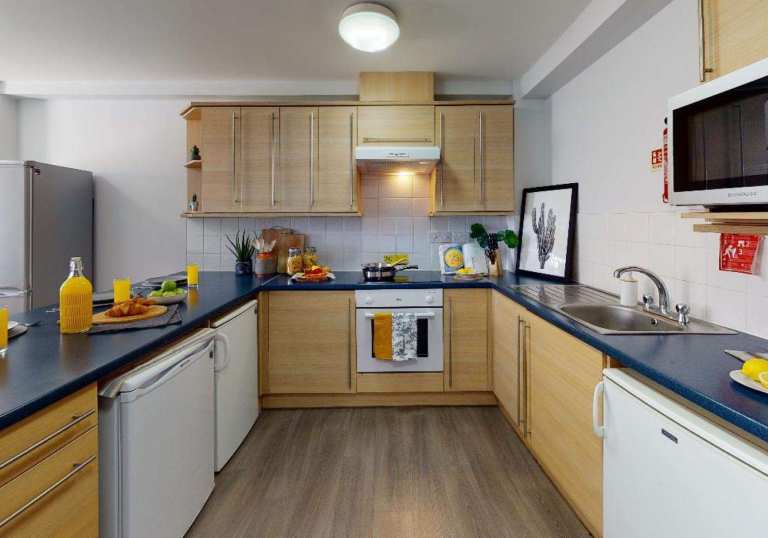 * Modern shared kitchen and living area with flatmates