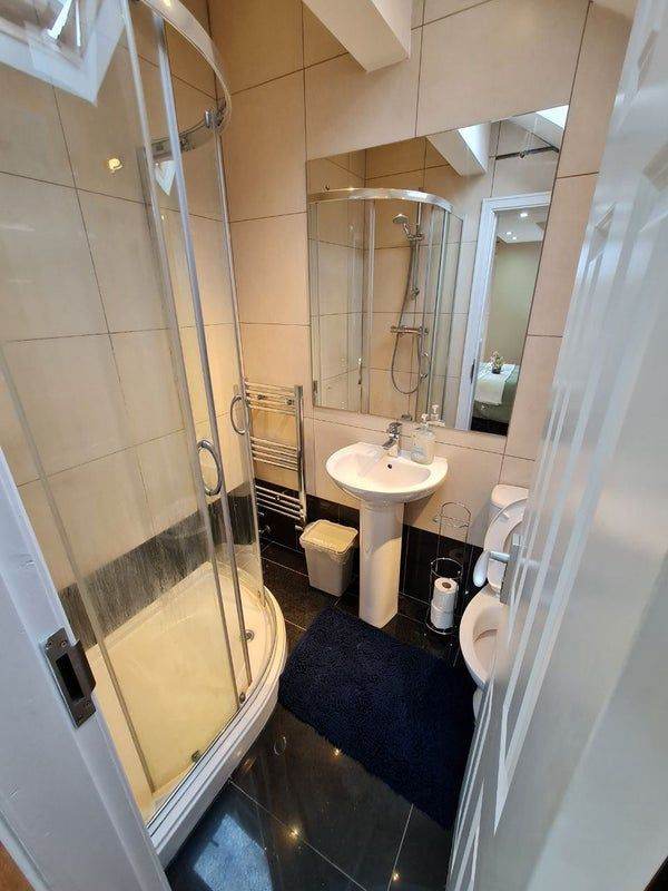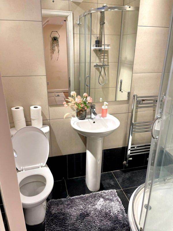 ✅ Ensuite bathroom comes fully equipped with sanitary ware, including a sink, toilet, towel rail, and shower.