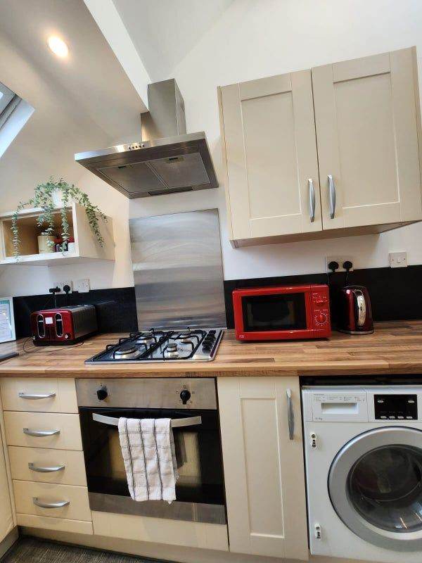 ⭕ The shared kitchen comes with an oven, hob, and extractor fan.