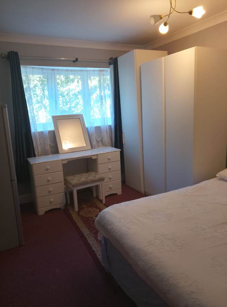 Furnished, larger sized double room to let in Harrow. Free broadband, washing machine, storage, parking and garage.