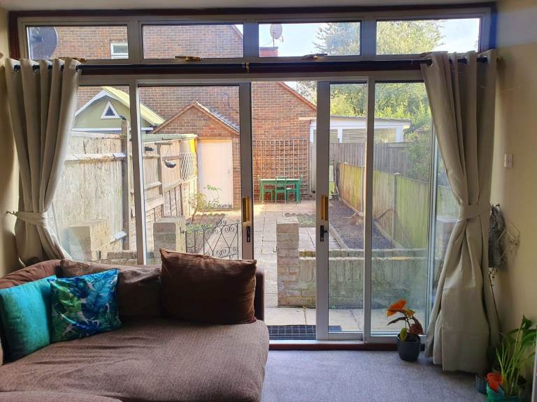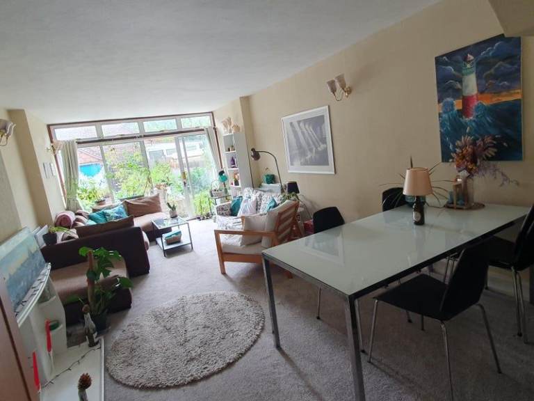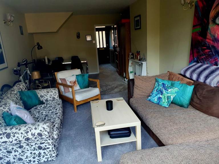 The house has plenty of space with a large living area and garden. It is over 3 floors. The room available is a large double room and is on the 2nd floor with a desk and plenty of storage space.