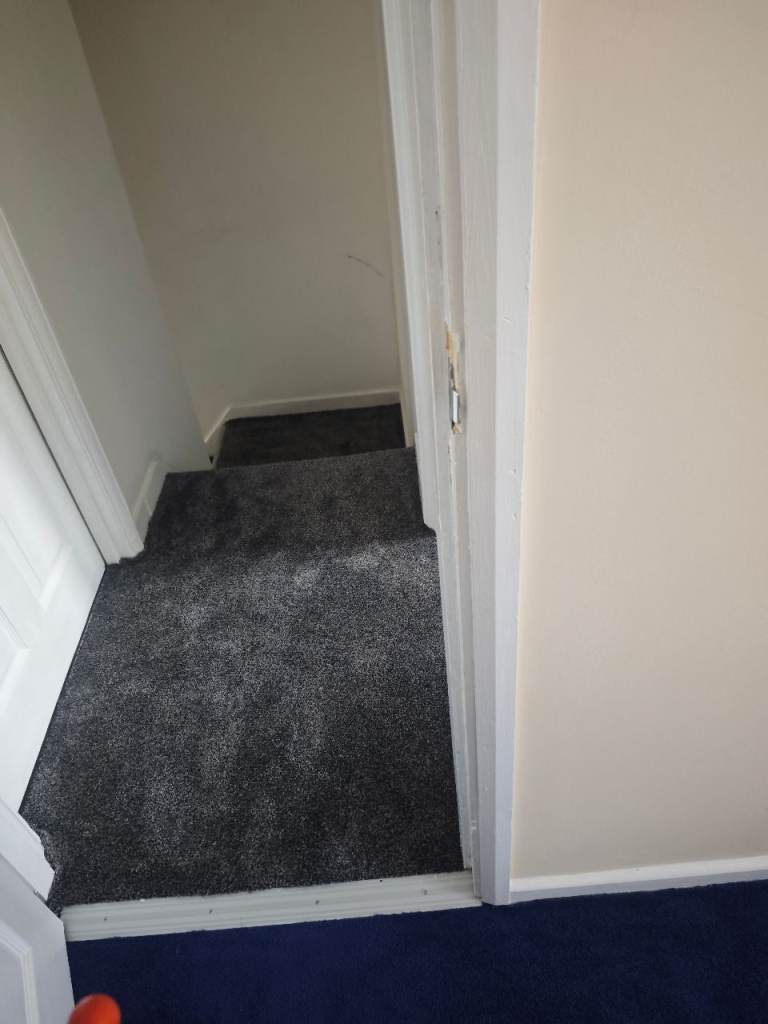 Room freshly redecorated, new carpet in room and on stairs, and new flooring in bathroom.