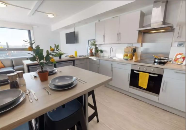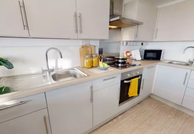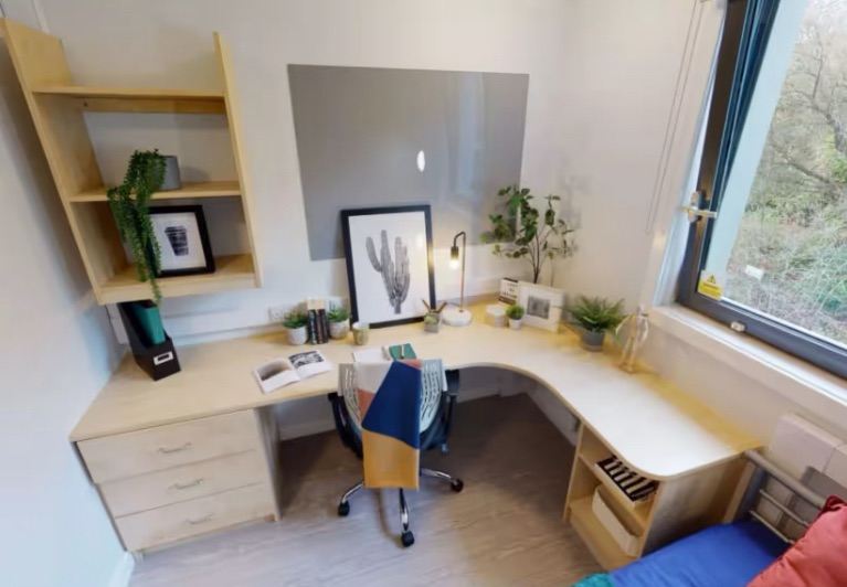 En-suite room with 3/4 size bed and a shared kitchen. Gym, common room and washing room on property. 5 minute walk to Abertay University and 10 minute walk to Dundee university. 10 minute walk to city centre. Students only.