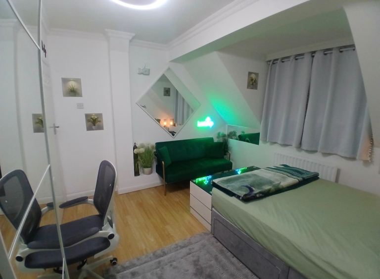 It’s a beautiful room in a family house, free wifi, bills Included only £500 deposit Plus one month rent advance