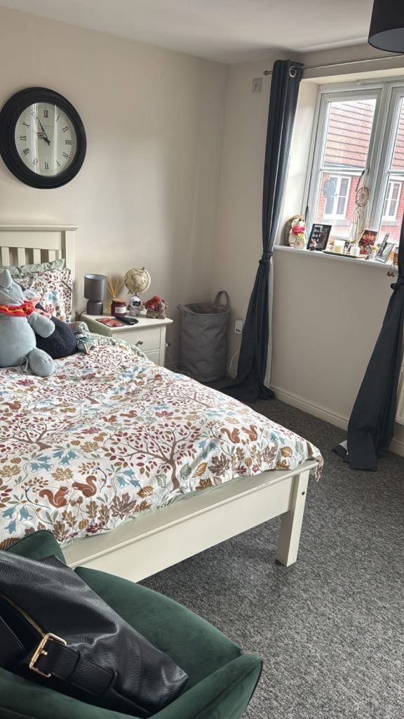 The room is bright and spacious, offering a relaxed place to unwind. The room will be furnished with a bed and wardrobe (option for unfurnished). There is a shared kitchen, with designated cupboards. There is a downstairs WC, shared bathroom with bath and shower and one of the rooms has an en suite (not this one). The lounge is lovely and spacious and has a large TV so perfect for nights in/house movie nights.