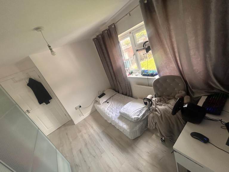 Room comes furnished with single bed and mattress, desk, wardrobe.
