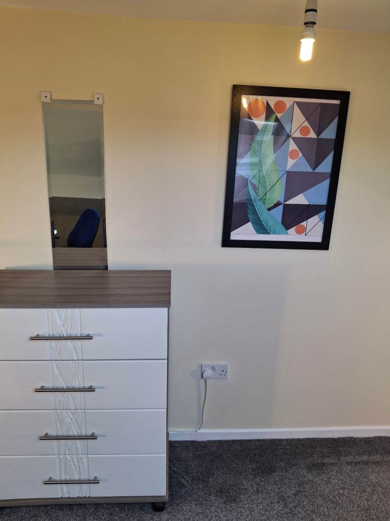 Large double bedroom with shared luxury bathroom. The room comes with large wardrobes and is fully furnished.