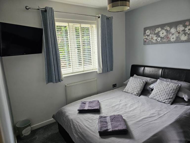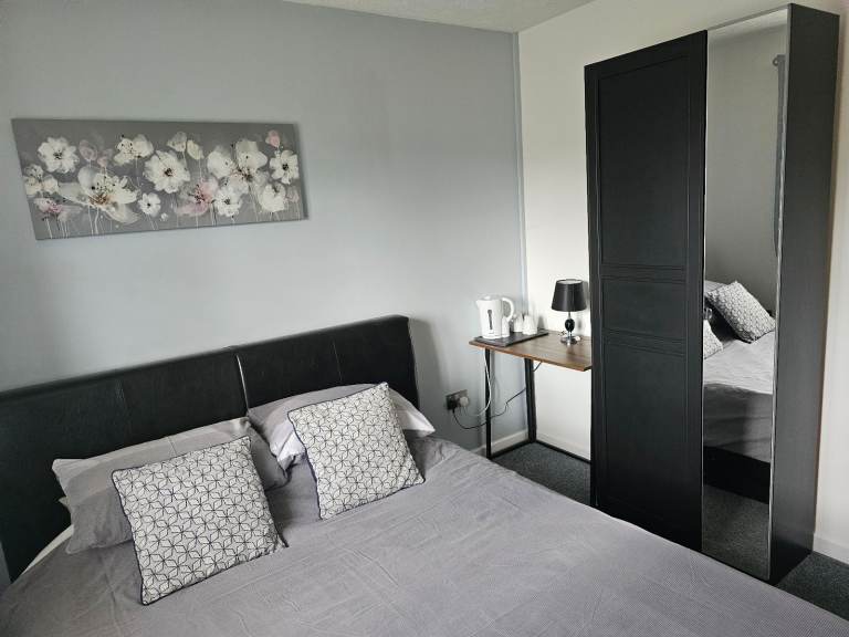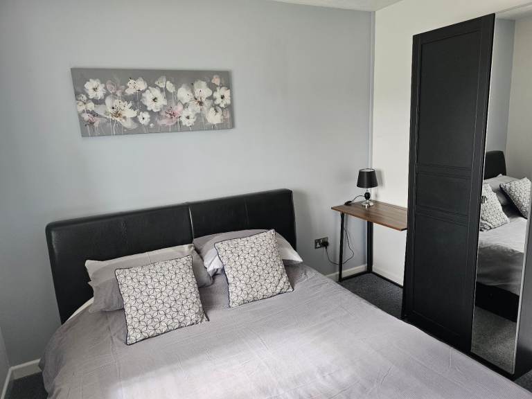 Furnished serviced accommodation ideal for business or contractors comprises of bedroom 1 kingsize bed with Mirrored wardrobe desk and seat bedside table and Sky WIFI TV, with sharded Bathroom and kitchen facilities, weekly change over and room clean.
