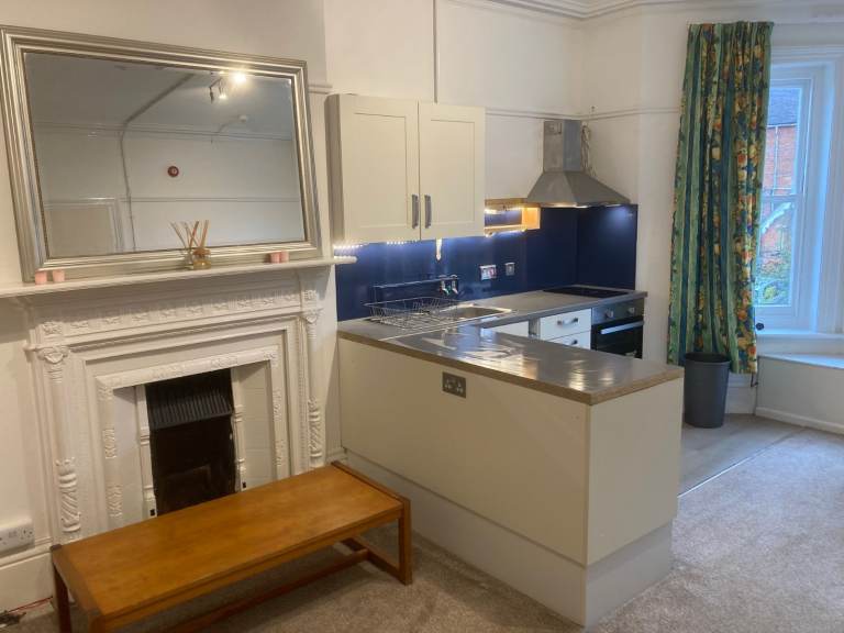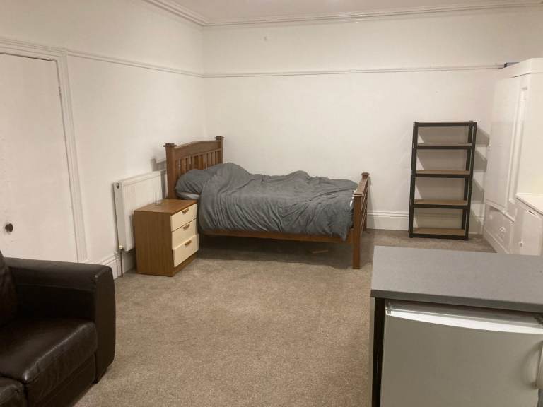 Very large double room studio with ensuite in large house to rent. Located on the first floor, this beautiful bed sit, located on the first floor, has a recent new kitchen and LED lighting and USB sockets. A massive light room with a tall ceiling, and original ornate cornice. Close to town centre, with a laundry room along with a garden. Fridge, freezer, oven and induction hob. A new ensuite with shower and WC has just been completed. All bills (Council tax, heating, hot water and common part cleaning) included in the monthly rent, except for electricity. One months rent as a deposit