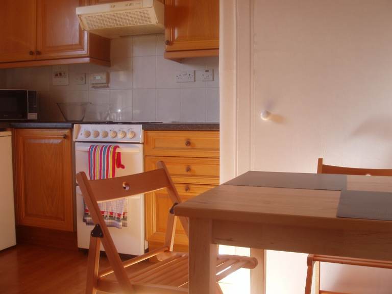 Kitchen: new fitted kitchen appliances, an attractive range of wood effect fronted wall and base units with co-ordinating work surfaces. A table and 2 chairs provided.