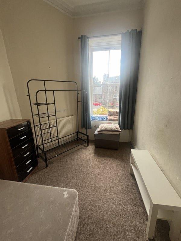 Room for rent in a 2 bed flat off Hawkhill available now! Across the street from bus stop and less than a ten minute walk to University of Dundee with a lovely view of the front garden and Tay. Access to a shared back garden as well and in unit laundry machine.