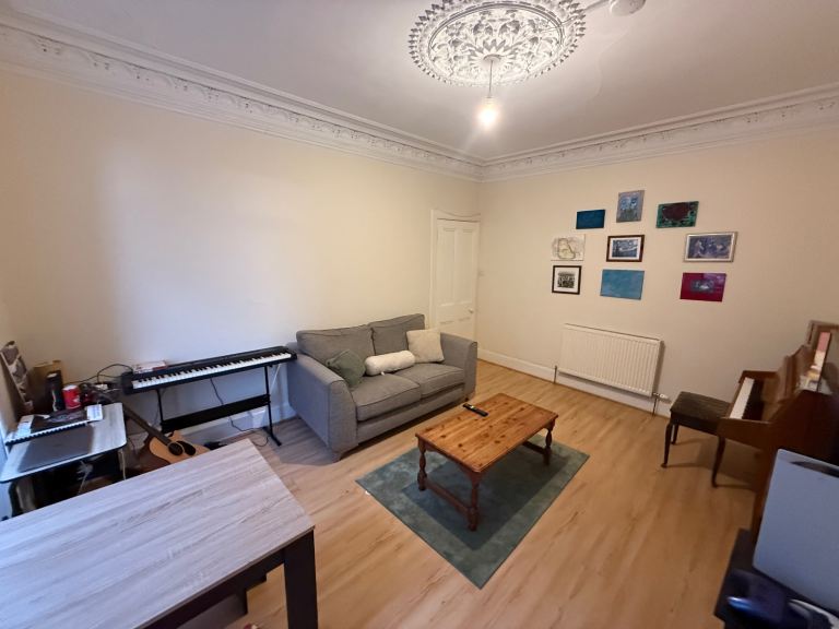 I have taken the smaller bedroom, so I do spend a fair amount of time in the living room. I am a musician and play piano in the living room, mainly at evenings and weekends. I also have an electric keyboard, which I am happy to use to keep noise levels down when needed.