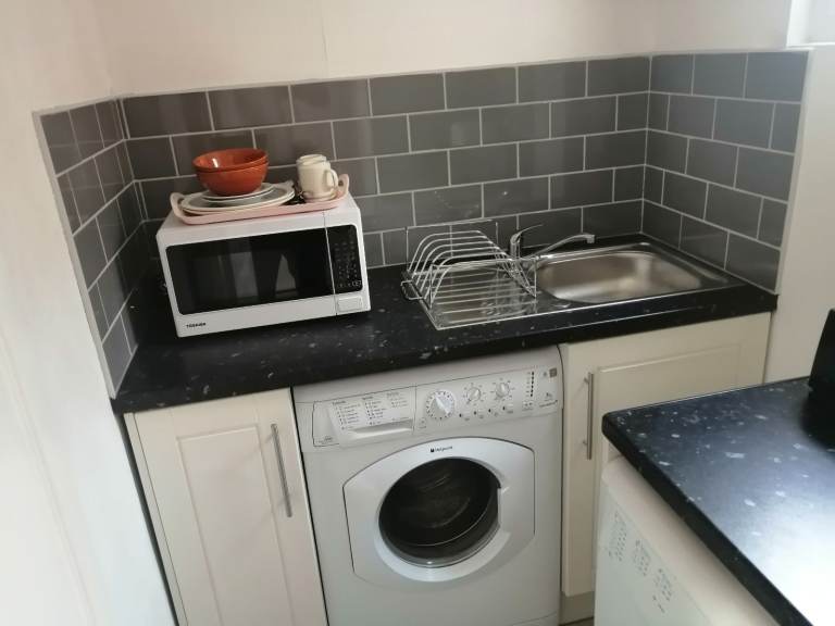 A lovely ensuite room fully furnished with double bed. Separate kitchen, fridge, washing machine, fridge and many more.