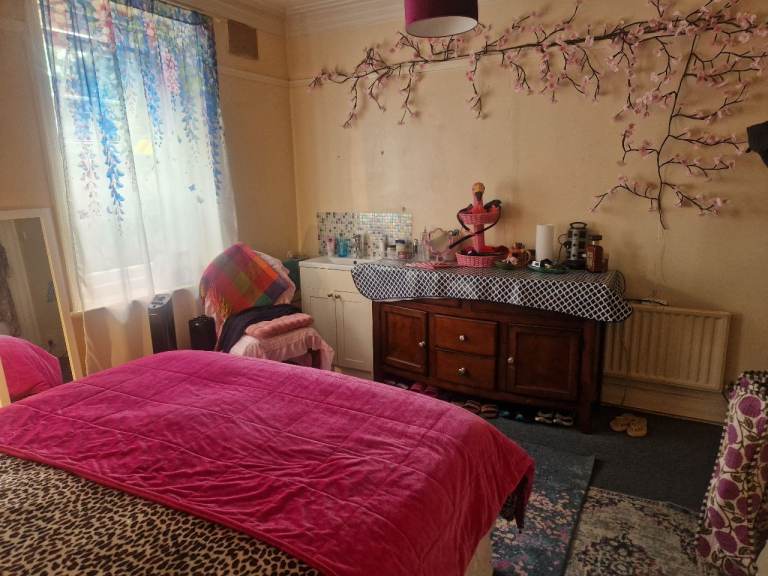 I have a large well furnished room with very comfy double bed ,fitted wardrobe ,own sink in room.