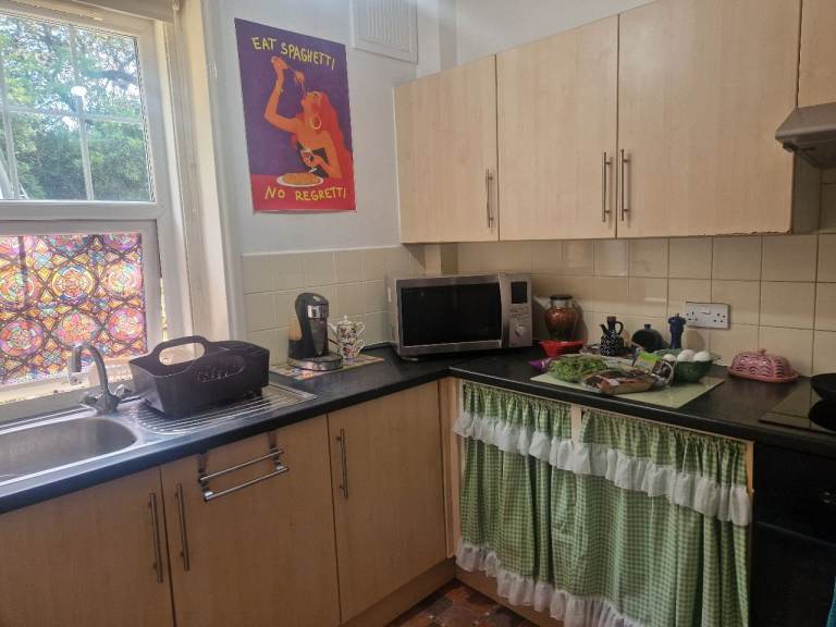 Kichen is fully equipt with huge larder fridge, huge larder freezer ,washing machine, indiction hob, oven ,microwave , large air fryer,pots /pans plates etc.