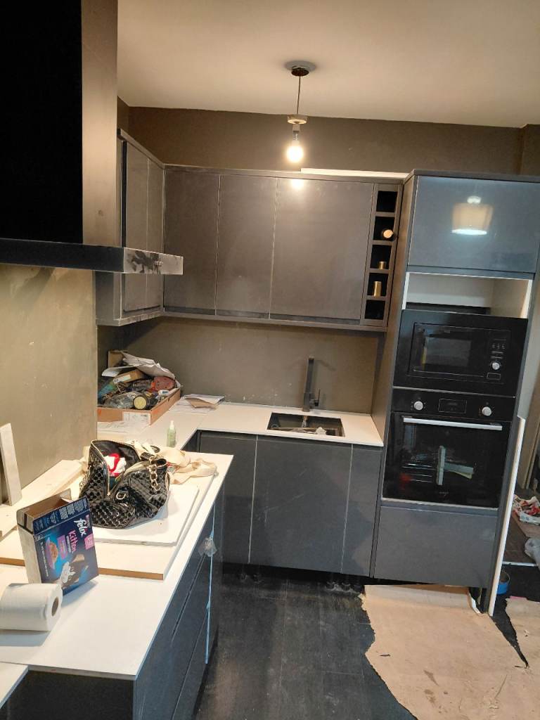 I'm in the process of having a new kitchen fitted.The bathroom is not brand new but of course there is running hot water and gas and electric.