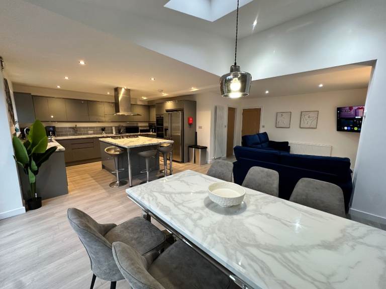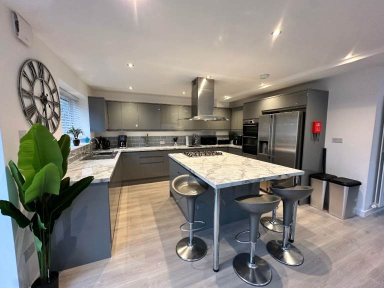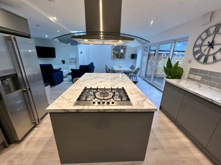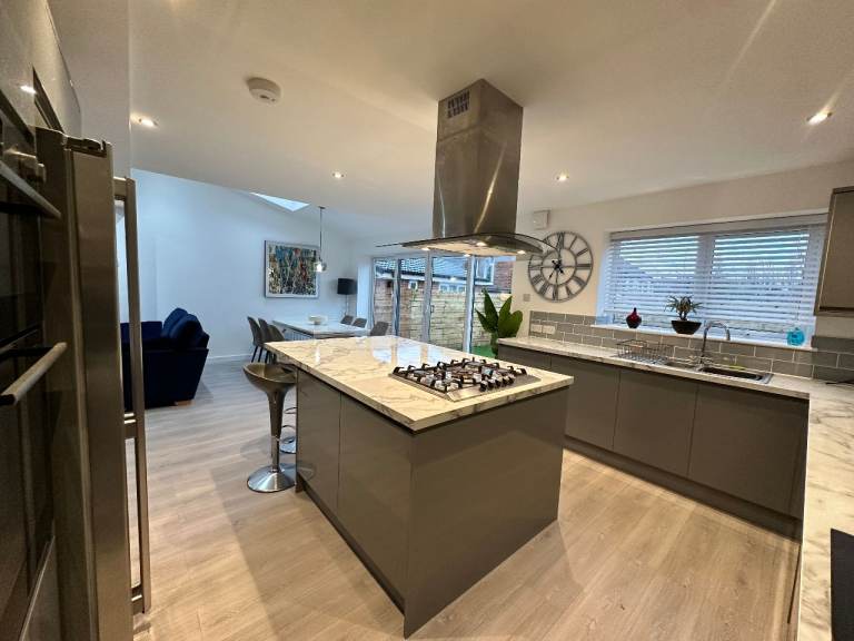 • Large open plan kitchen with island