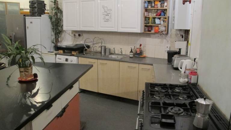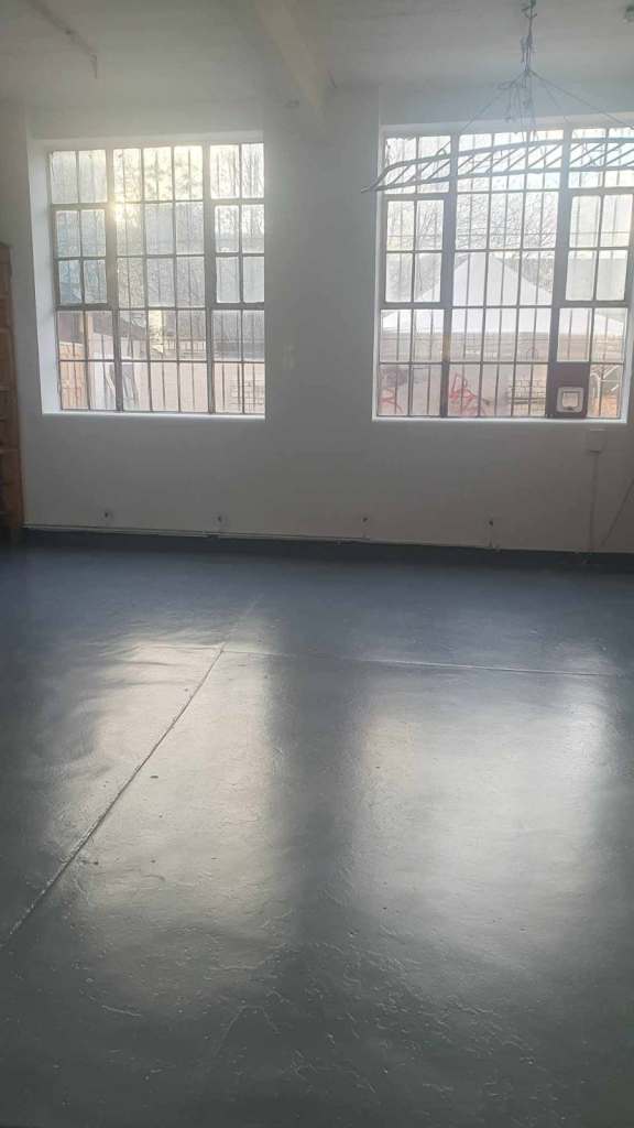 The rooms are huge and the space is huge. Two bathrooms, a large open plan kitchen, a mezzanine chill area with projector, communal table/dining area, and 2 large mirrored studio spaces.