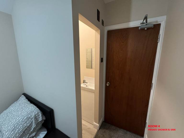 Room 4 is single with private shower & sink.
