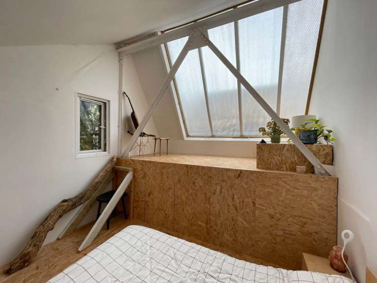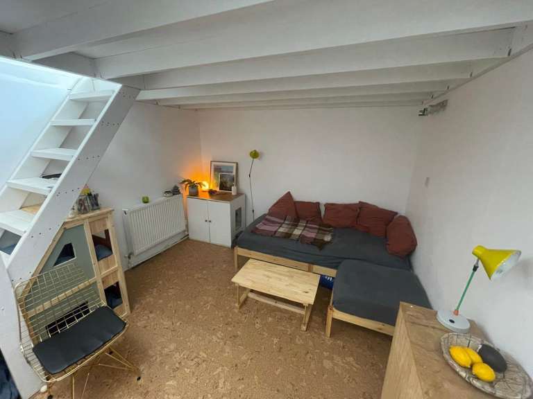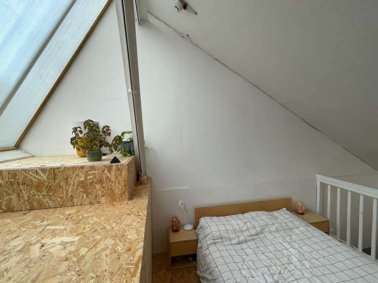 The room is bright and spacious with a high ceiling, mezzanine and skylights with a window that opens. Rent is £850 pcm and includes all bills, household goods and wifi.