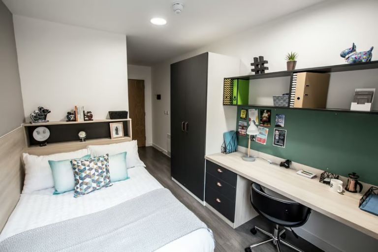 Room comes with a spacious double bed, storage, desk, bathroom & select furniture. Access to a fully-equipped communal kitchen, shared with two other people.