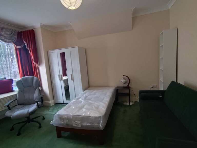 A spacious clean beautiful quiet new double room has just been refurbished and fully furnished, with quality new mattress, sofa bed, study desk, floor lamp, big wardrobe with mirror and chest of draws, it is available now.