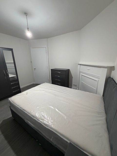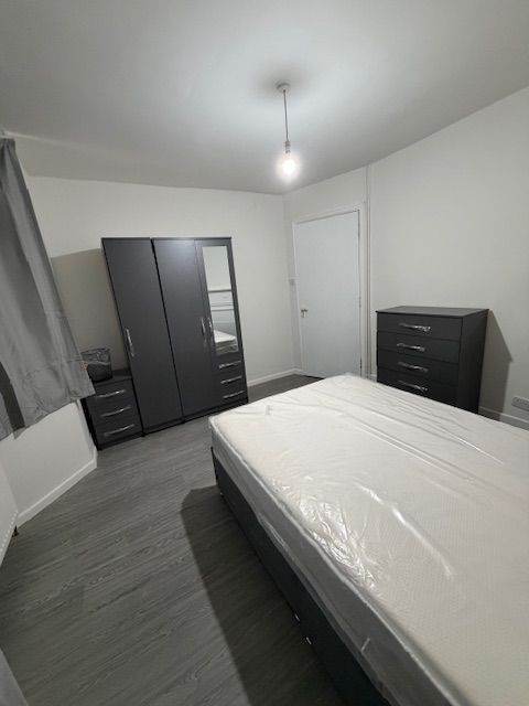 The room is fully furnished with a double bed, a wardrobe, and a chest of drawers, offering a comfortable and practical living space. Rent is £800 per month for a single occupant. All bills are included.