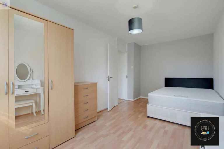 This spacious double room is available to rent in a well-kept shared flat in Barking. The room comes fully furnished with a double bed, wardrobe, desk and benefits from good natural light throughout.