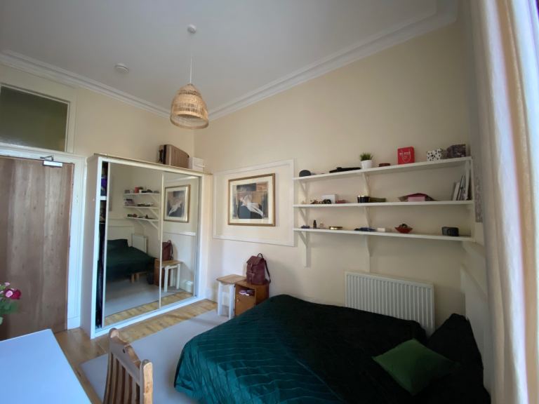 Double room in a spacious flat, 4 minutes from Haymarket station, with great transport links. The street is filled with cafes, shops and restaurants. 10 minutes to the West Princes Street.