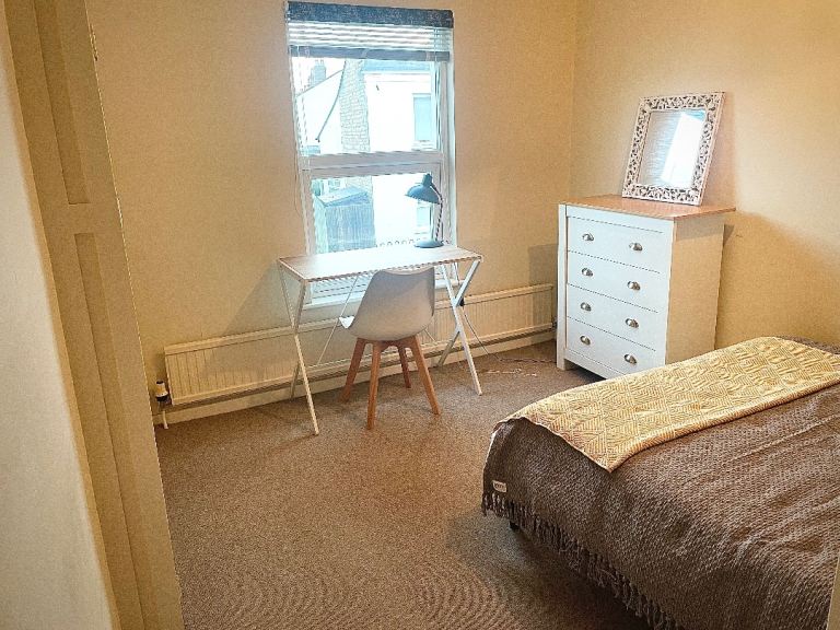 New bed and new memory foam mattress. New chest of drawers. Built in wardrobe.