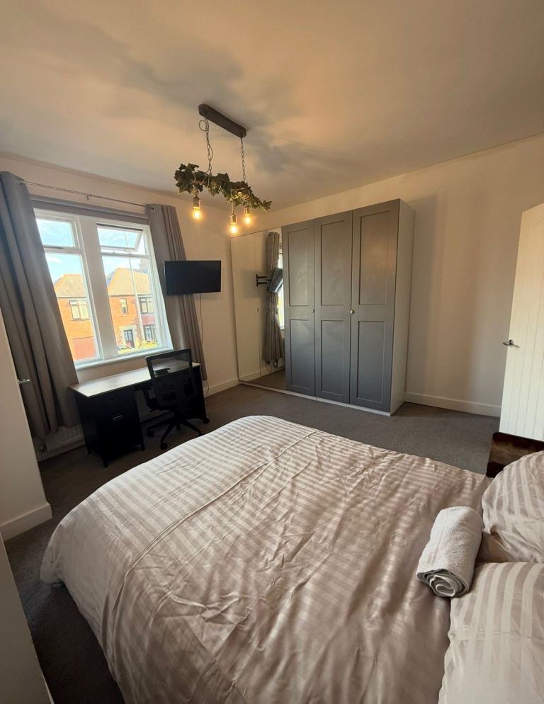 Enjoy style, comfort, and convenience in this spacious double bedroom, fully furnished with a wardrobe, drawers, desk, storage bed, TV and more – ready for you to move straight in.