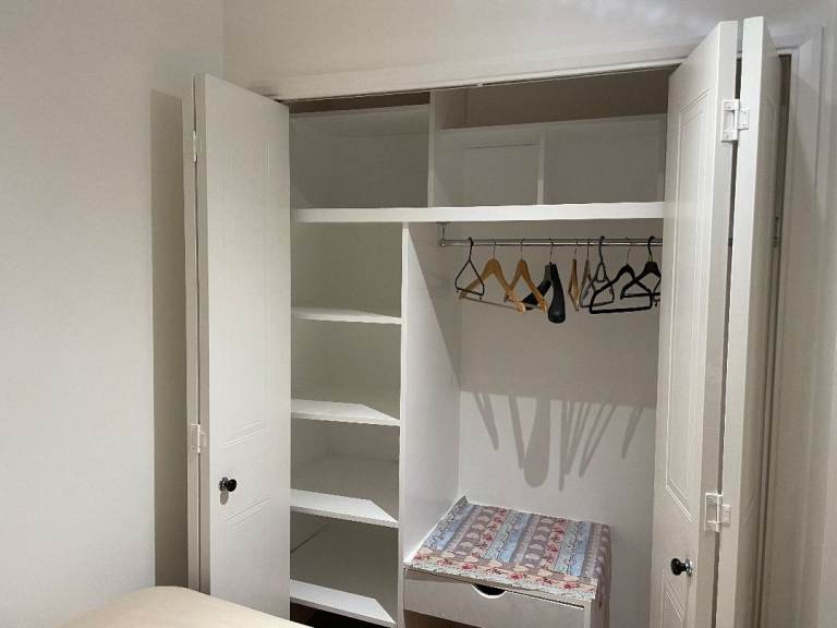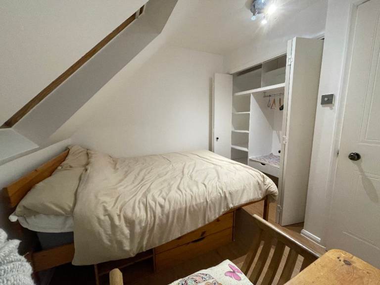Double room for single occupancy with good storage, desk, seat, spacious cupboard, under bed storage.